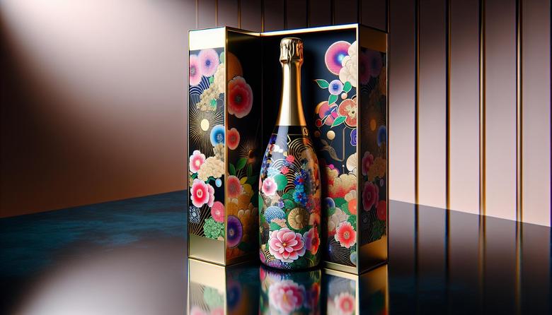 村上隆の「スーパーフラット」理論は、日本の伝統美術と現代ポップカルチャーを融合させる考え方よ。今回のコラボでは、彼のこの理論に基づき、ドン・ペリニヨンの伝統的な盾型エチケットを「お花」の風景に置き換えているの。