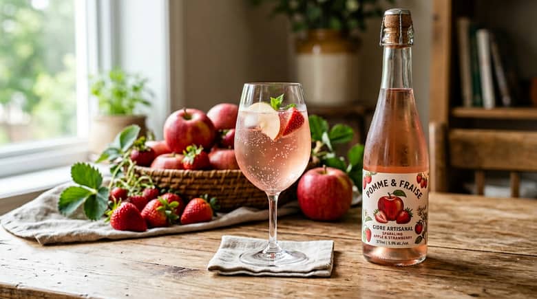 完熟りんごはシードルのベースとしてしっかりとした甘みと酸味を提供し、イチゴは香りとフルーティーなアクセントを加えているの。