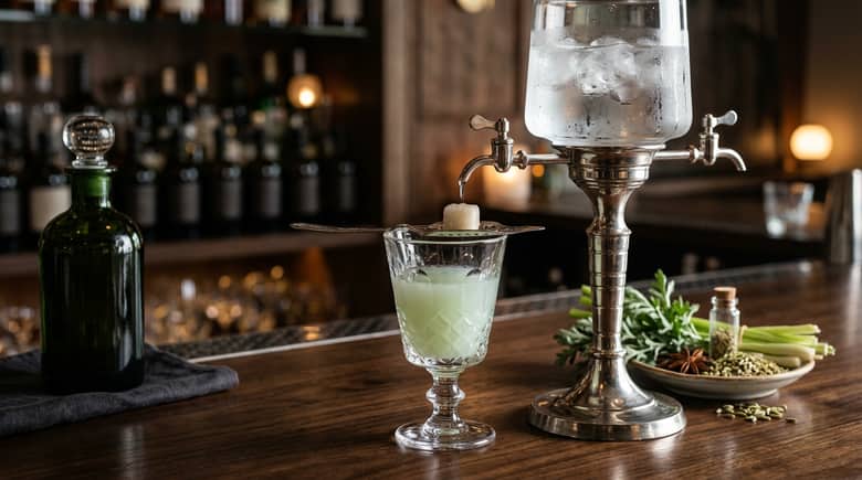 特に覚えておきたいのは、アブサンが ショットで勢いよく飲む酒 ではないことです。高い度数は、そのまま一気に飲むためではなく、加水で香りを開かせる前提と結びついています。