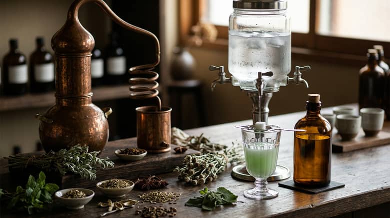 20歳未満の飲酒は法律で禁止されています。この記事は、商業的なアブサン製法を理解するための高水準の解説であり、家庭蒸留の手順ではありません。