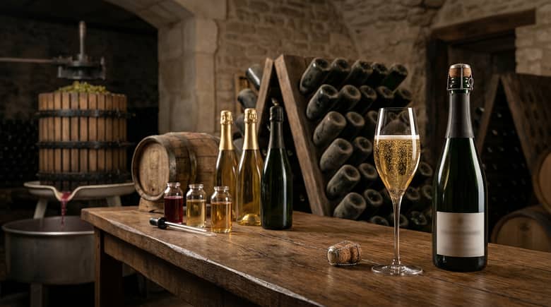 このページでは、シャンパーニュの作り方を、収穫からラベル貼りまで順に追います。全体像は シャンパーニュとは?完全ガイド にあります。