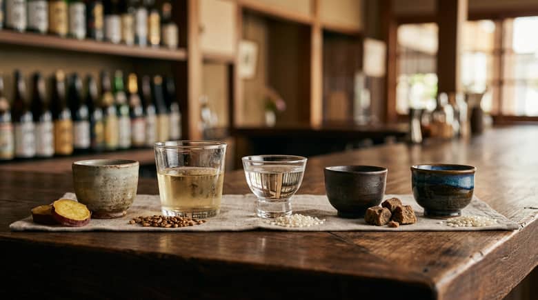 軽快な麦焼酎や米焼酎から始めると入りやすく、香りの違いを学びたいなら次に芋焼酎へ進むと違いがわかりやすいです。